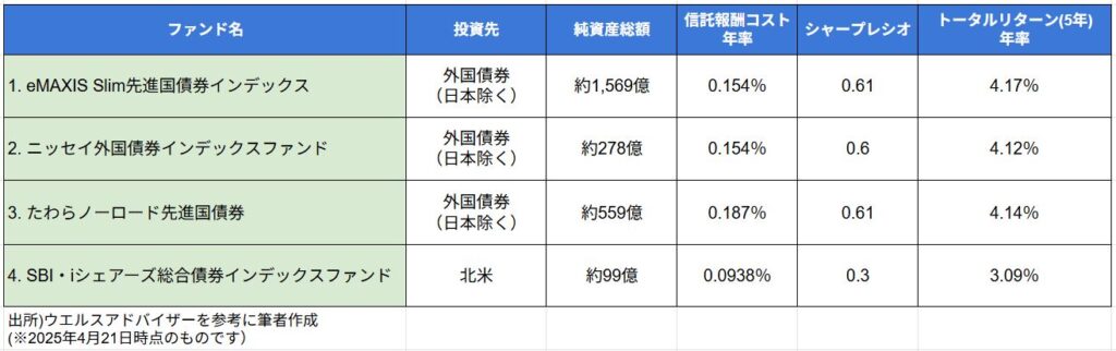 そこで、個人的に気になっていた新NISAで購入できるおすすめの債券投資信託4000を、ここからさらに独自の5つの評価基準で比較してみました。