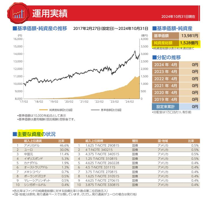 この1つで先進国の債券に分散投資を行えるという商品で、運用会社は三菱UFJアセットマネジメントです。