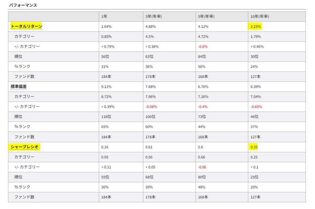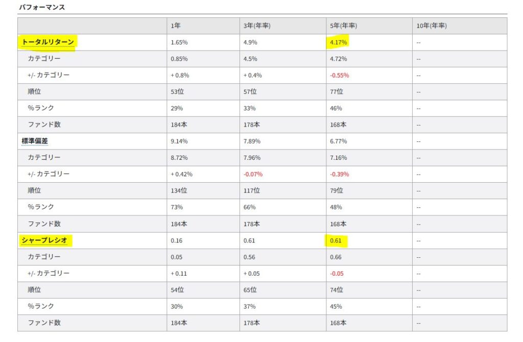 ちなみにシャープレシオは投資対象によっても大きく変わる懸念がありますが、今回は投資先が全て海外債券で見ていますので、1つの比較対象としていいかと思って入れ込んでみました。