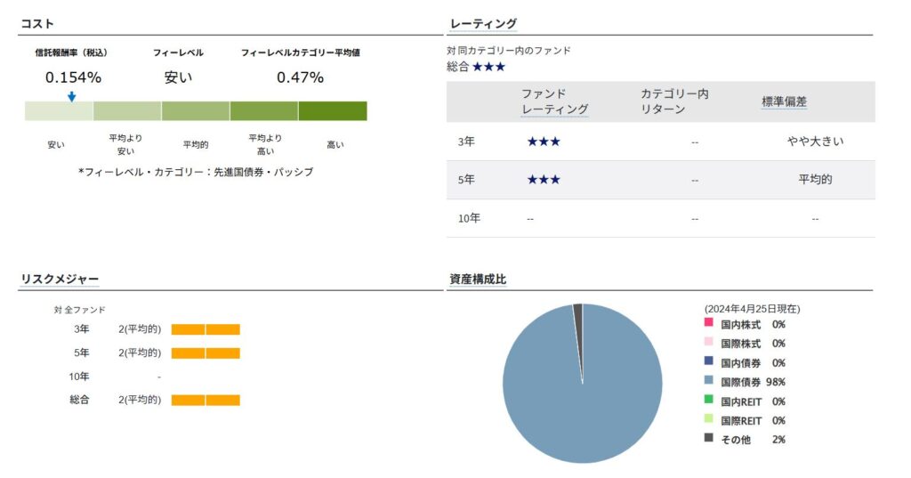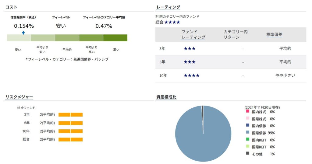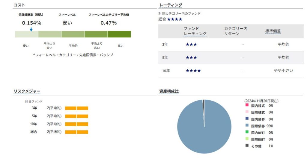 世界の優良な債券にたったこれ1本で自動的に投資できると考えれば、このコストでできるわけなので、めちゃくちゃ安いですよね。