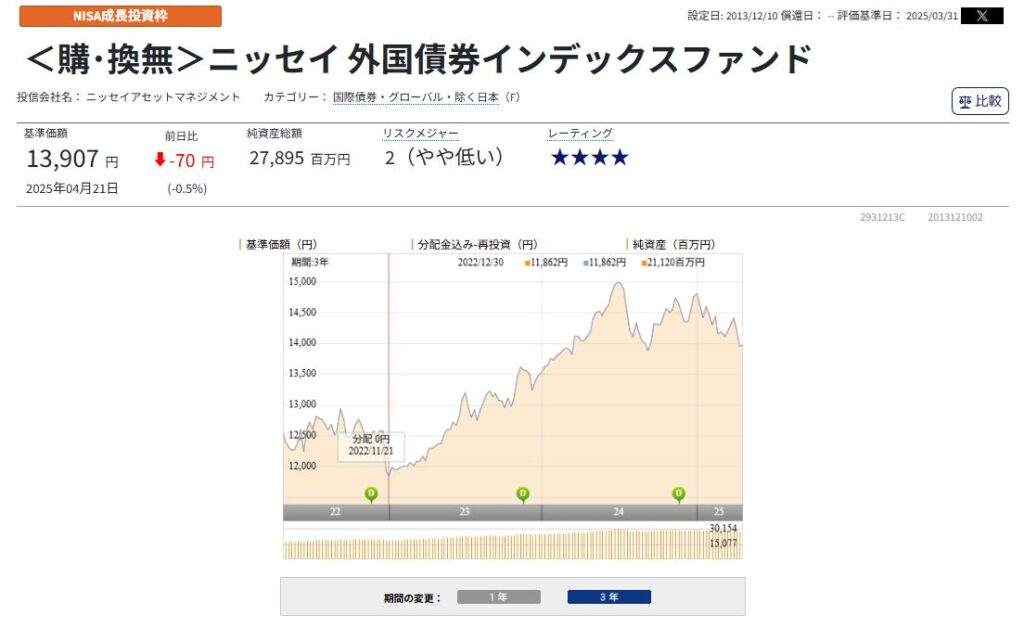 次に、おすすめの債券2つ目が「ニッセイ外国債券インデックスファンド」です。