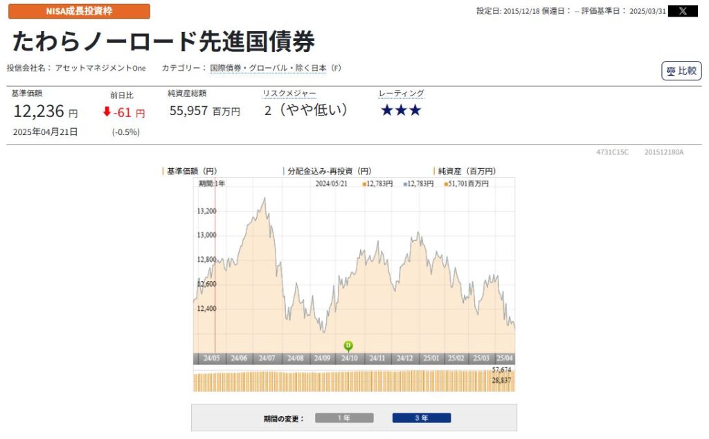 続いて、おすすめの債券3つ目ですが、「たわらノーロード先進国債券」です。