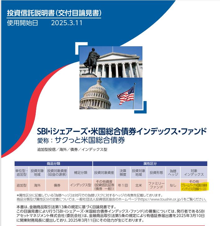 最後、おすすめの債券4つ目は「SBI・iシェアーズ・米国総合債券インデックス・ファンド」です。