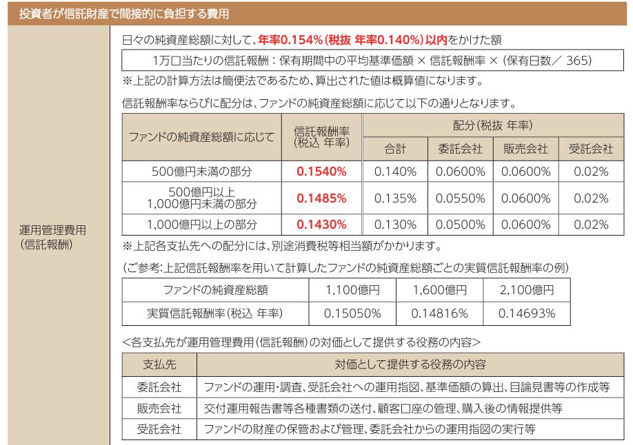 こちらも信託報酬コスト0.154%ですので、例えば100万円投資であれば、年間1540円の手数料で保有ができるということになります。