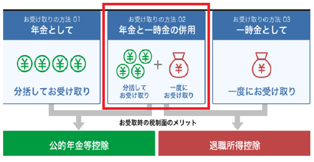 企業型DCやiDeCoの一部を一時金、残りを年金形式で分割受け取りすることが可能です。