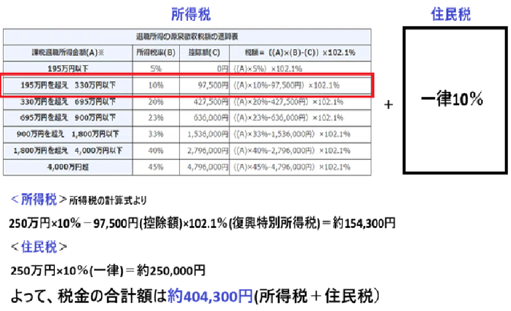 一括での受け取りには退職所得控除が適用されます。