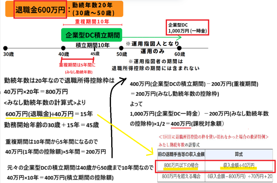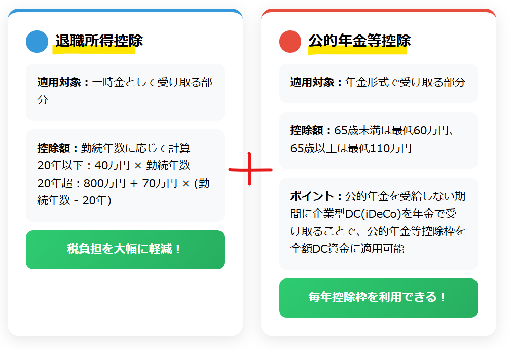 最大のメリット: 退職所得控除と公的年金等控除の2つの控除枠をフル活用できます。