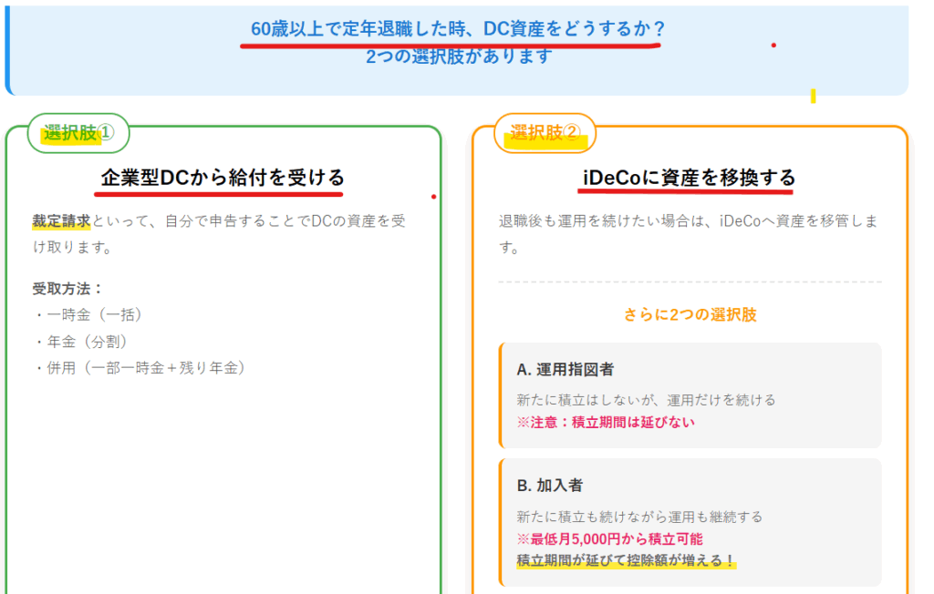60歳以上で定年退職した時のDC資産の選択肢