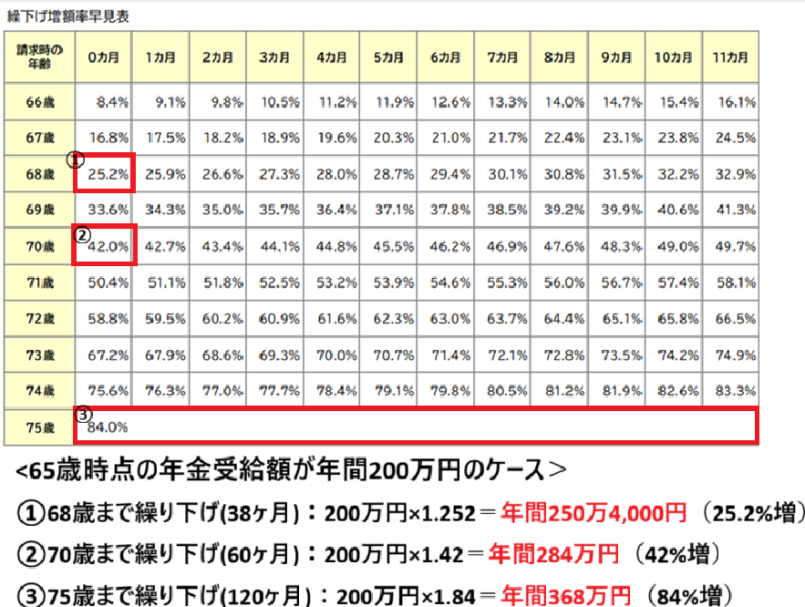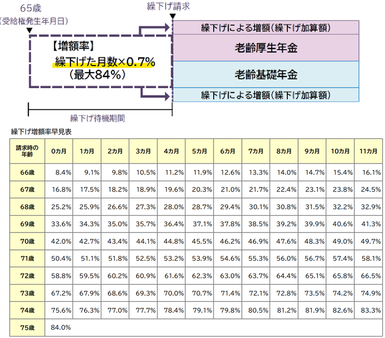 公的年金の繰り下げによる増額率