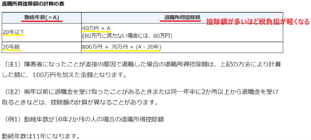 退職所得控除の計算式